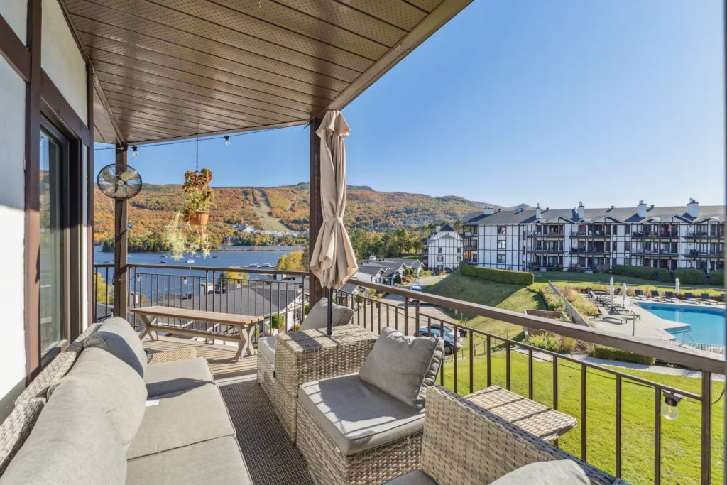 Condo de luxe - Lac Tremblant (5 min des pistes de ski). Magnifique condo au bord du lac avec vue imprenable sur la montagne. Accès plage & lac, Piscine, gym, Terrasse, Sécurité maximale